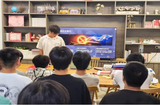 渝北校区,生活部组织了学生社区活动室组织专题学习会。主讲人围绕“提高安全意识”主题,从“强化法规意识”“倡导健康生活方式”等方面展开宣讲。