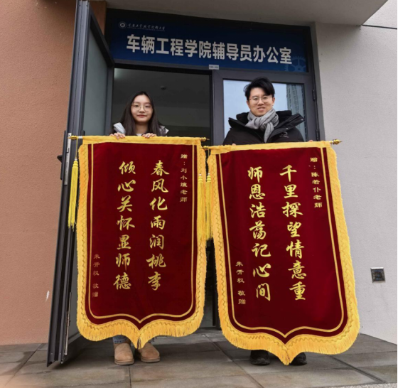 这面锦旗,不仅承载着学生对学院老师深深的情谊,更是对车辆工程学院以人为本、关爱学生的工作理念的充分肯定。学院将继续深化师德师风建设,进一步营造育人为主、关怀至上的校园氛围,让每一位学子都能感受到集体的温暖与力量。